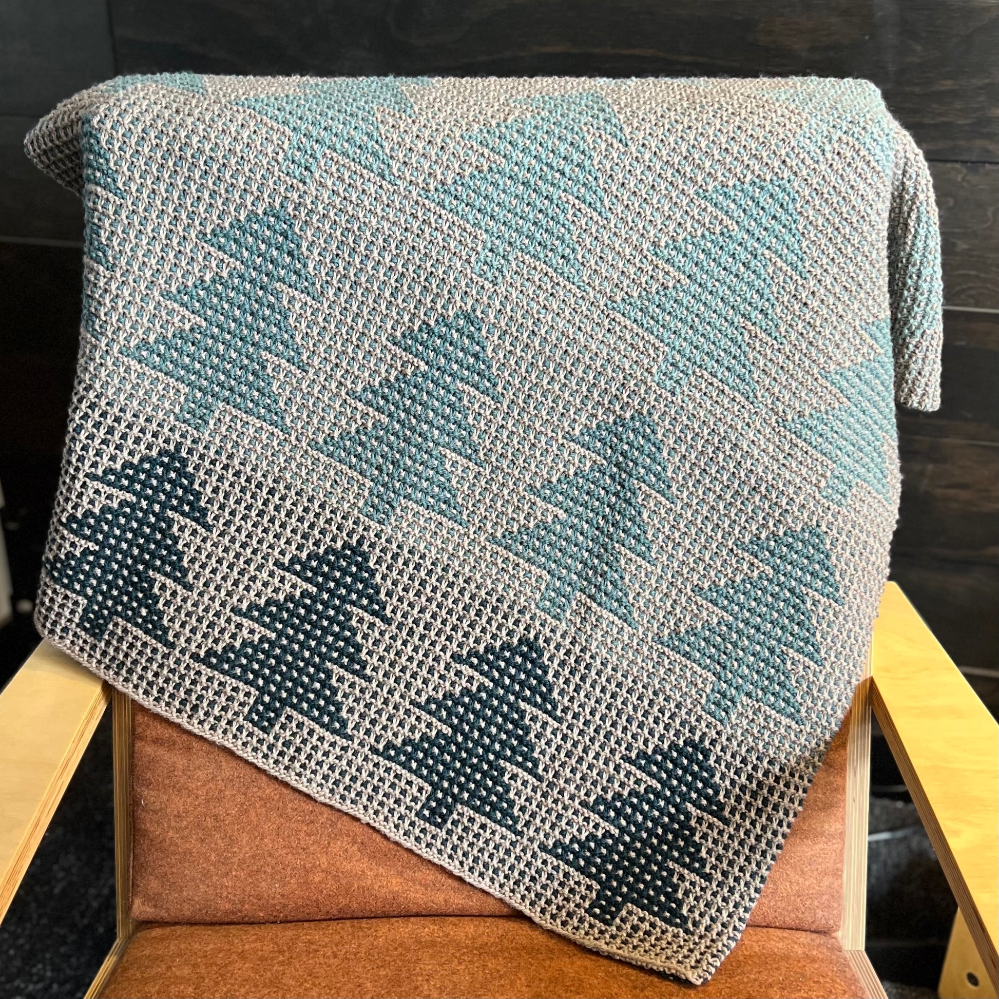 Mosaic knitting may look complicated, but only one colour is knit at a time. The pattern is created by slipping stitches from the previous row. If you can knit garter stitch, slip stitches, and follow directions, you can make this blanket!