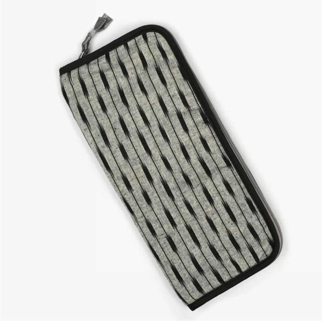 This custom designed needle case is now available in Ikat fabric. Its unique design is achieved by tie-dying different yarns before weaving, resulting in a sophisticated blend of color.