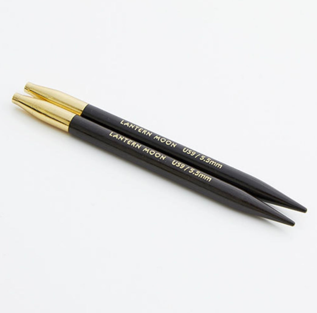 Lantern Moons interchangeable circular knitting needles are made of Ebony wood, one of the worlds most valuable materials. The liquid silk finish of these lightweight interchangeable circular needles and the 24K finish on the brass connector, guarantees snag-free knitting. The interchangeable circular needles smooth cord never twists thanks to a swivel connector, and it lies flat for easy storage. Smoothly honed and shaped needle tips work well with all yarns.
