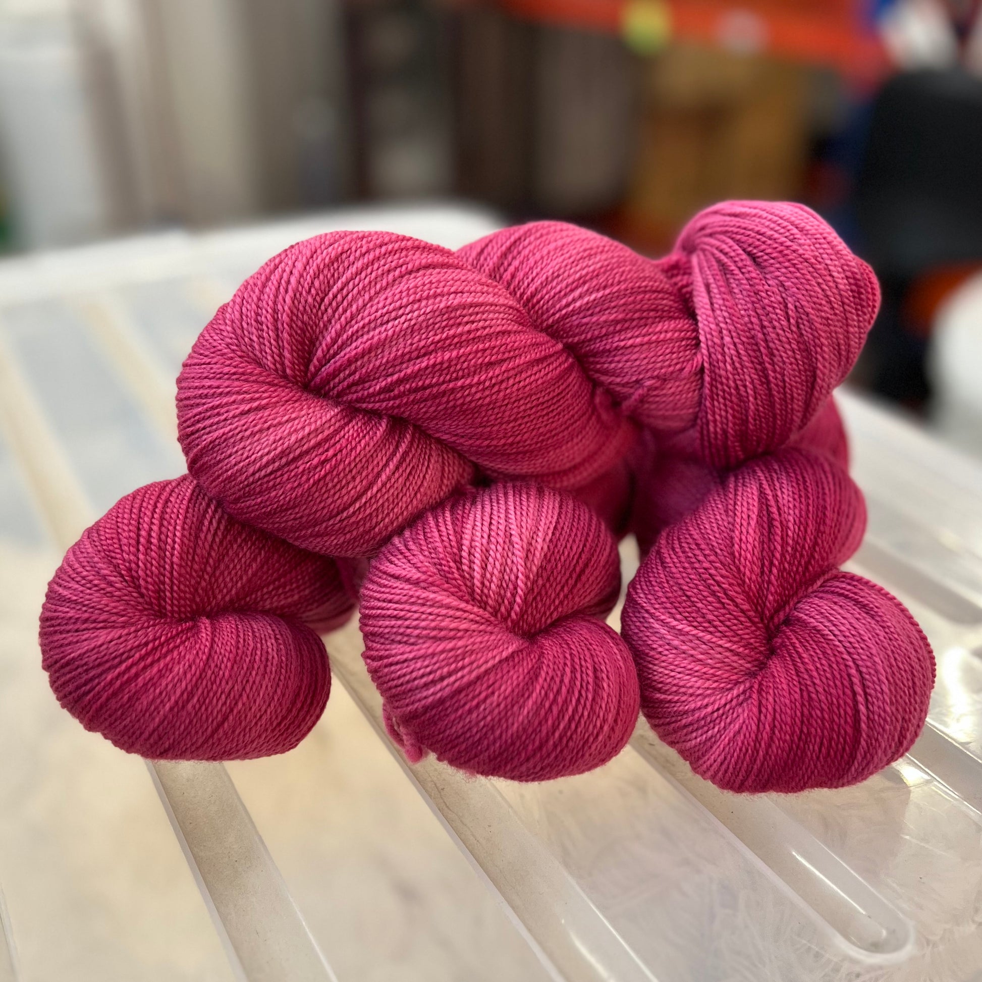 Hand dyed by us! This yarn is a stunning semi-solid.