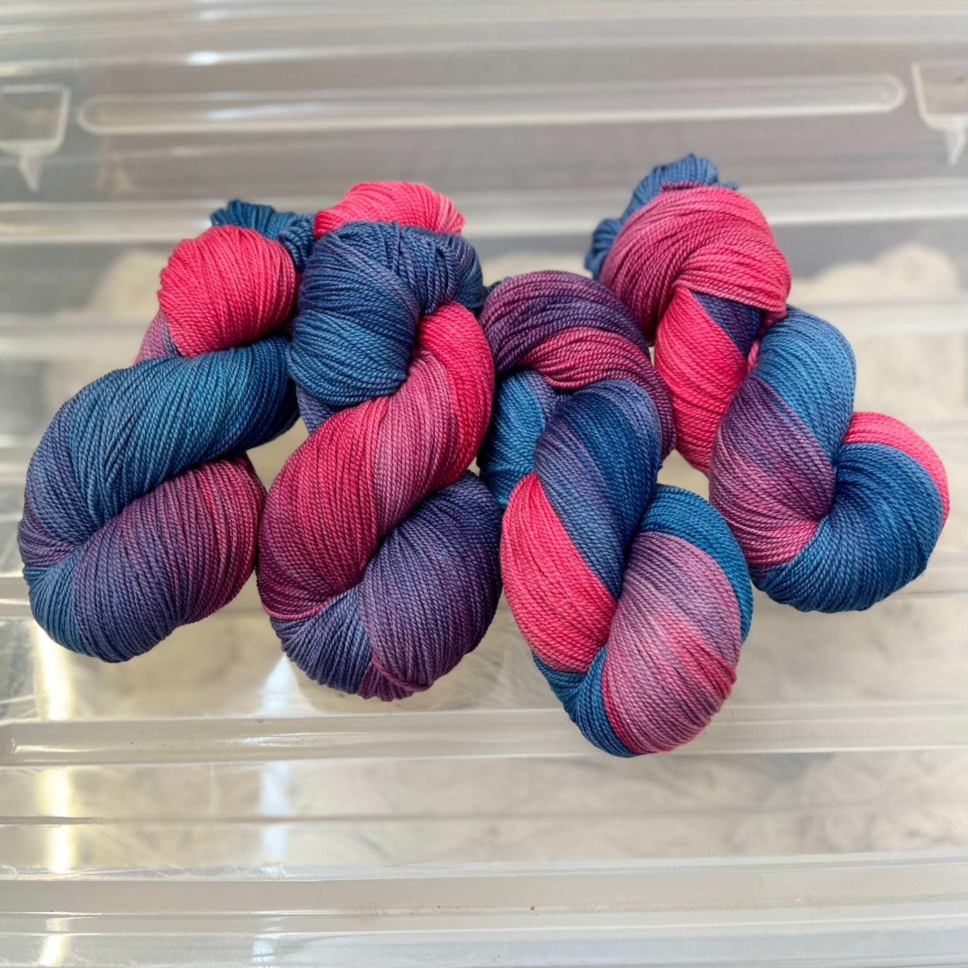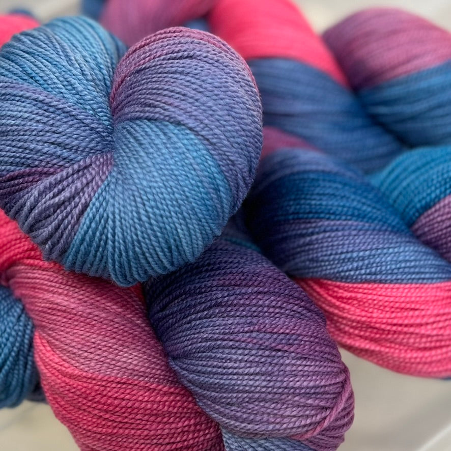 Hand dyed by us, this 100% high twist Merino 4ply/fingering yarn delivers 400m of springy, durable fibre with subtle colour depth that makes socks, shawls and accessories pop.